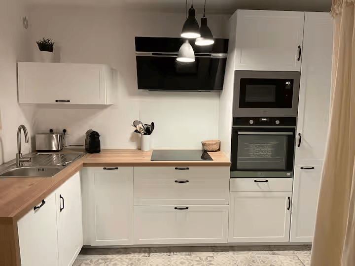 BBQ charcoal grill, Coffee machine, Cooking utensils, Dishwasher, Kitchen stove, Microwave, Oven, Refrigerator, Toaster, Vacuum cleaner